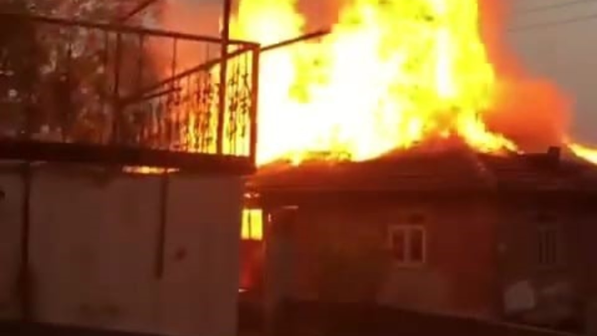Büyüyen alevler nedeniyle evde yaşayan 3 vatandaş son anda sokağa çıkmayı başardı.