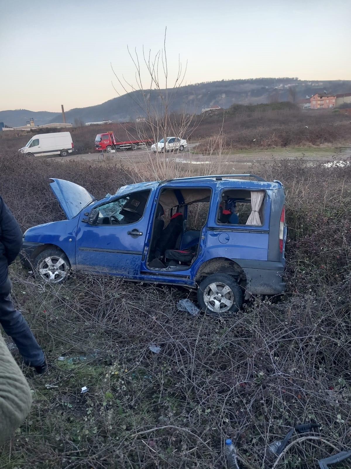 Önüne çıkan köpeğe çarpmamak için şerit değiştirmesi ve yoldan aniden çıkması sonucunda direksiyon hakimiyetini kaybederek önce takla atarak ve sonrasında şarampole uçması sonucu sürücü K.B.(35), ve araç içinde yolcu olarak bulunan Y.U.(18), O.A.(43), N.K.(40) ve E.A.(45) isimli şahıslar yaralandı.