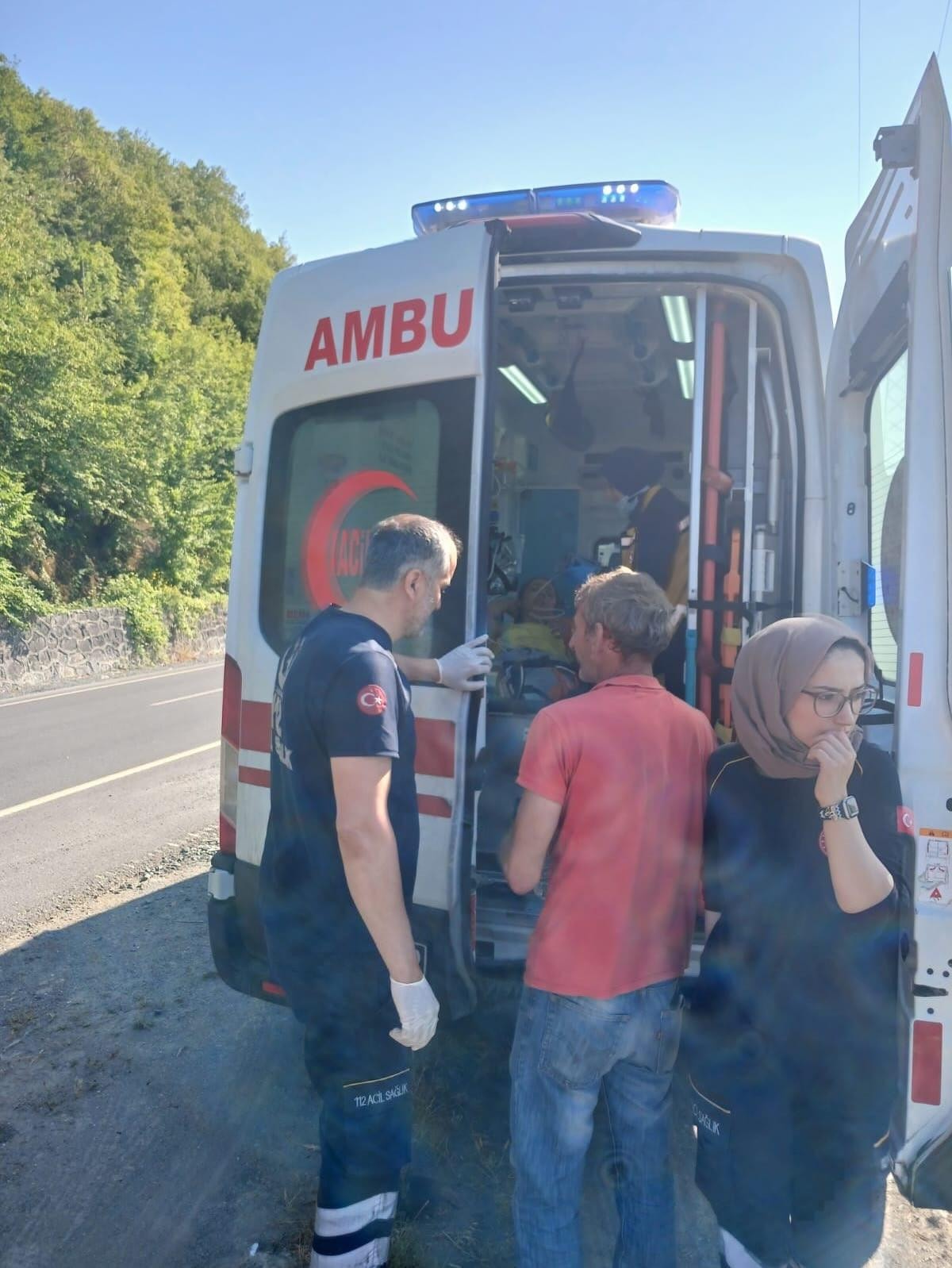 Olay yerine gelen sağlık ekiplerince düştüğü yerden kurtarılan kadın, Alaplı Hastanesine kaldırıldı.
