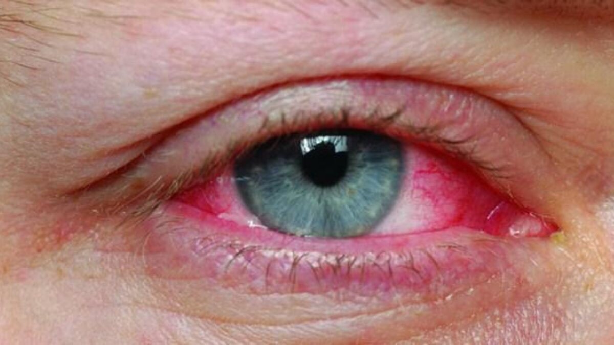 İlk olarak genelde gözlerde kızarıklık, çapaklanma, batma, yanma, sulanma, ışık hassasiyeti, bulanık görme ve göz kapaklarında ödem meydana gelir.