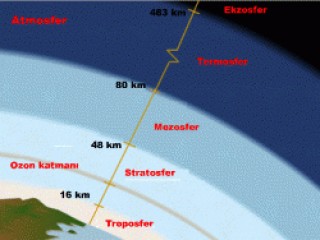 5) Ekzosfer : Atmosferin en üst katıdır. Az miktarda hidrojen ve helyum atomlarından oluşur. Kesin sınırı bilinmemekle birlikte üst sınırının yerden yaklaşık 10.000 km yükseklikte olduğu kabul edilmiştir.