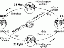 Kuzey Yarıkürede yaklaşık olarak 21 Mart İlkbahar Ekinoksu – 23 Eylül Sonbahar Ekinoksudur.Güney Yarıkürede yaklaşık olarak 21 Mart Sonbahar Ekinoksu – 23 Eylül İlkbahar Ekinoksudur.