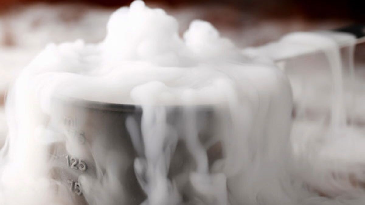 Kuru buz yapmak için, karbondioksit gazı önce soğutulur ve yüksek basınç altında sıvıya dönüştürülür.