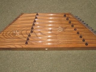 Türk Dil Kurumu'nun sitesindeki anlamına göre: "Kanuna benzeyen, tokmaklarla çalınan bir tür telli çalgı." Kubbealtı Lugatı'ndaki anlamına göre ise: "Tellerine iki küçük tokmakla vurulmak suretiyle çalınan kanuna benzer bir çalgı."