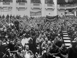 Öte yandan, “Sovyet”i kurmaya çalışan Menşevik'e bağlı milletvekiller ile işçilerin temsilcileri, Nikolay Çheidze'nin başkanlığı ve Aleksandr Kerenski'nin başkan yardımcılığıyla “Peterburg Sovyeti” kurulmıştır. Yönetim kuruluna 15 kişi seçilmiş, aşırı devrimin gerçekleştirilmesini öne süren Bolşevik'ten ancak iki kişi katılabilmiştir.