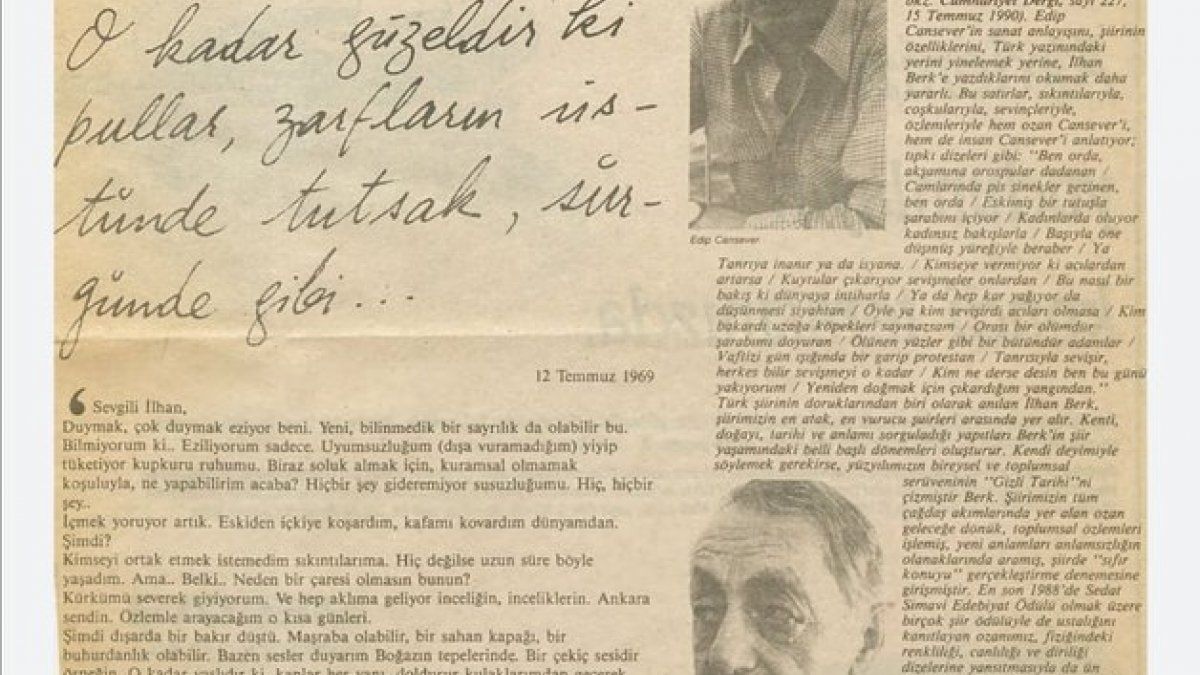 İki büyük şair, iki büyük aşık, iki büyük edebiyatçı... Edip Cansever ve İlhan Berk'ten bahsediyorum. Yazarların, şairlerin mektupları pek meşhurdur. Şairler sadece sevgililerine mektup yollamazlar, birbirlerine de nameler gönderirler.
