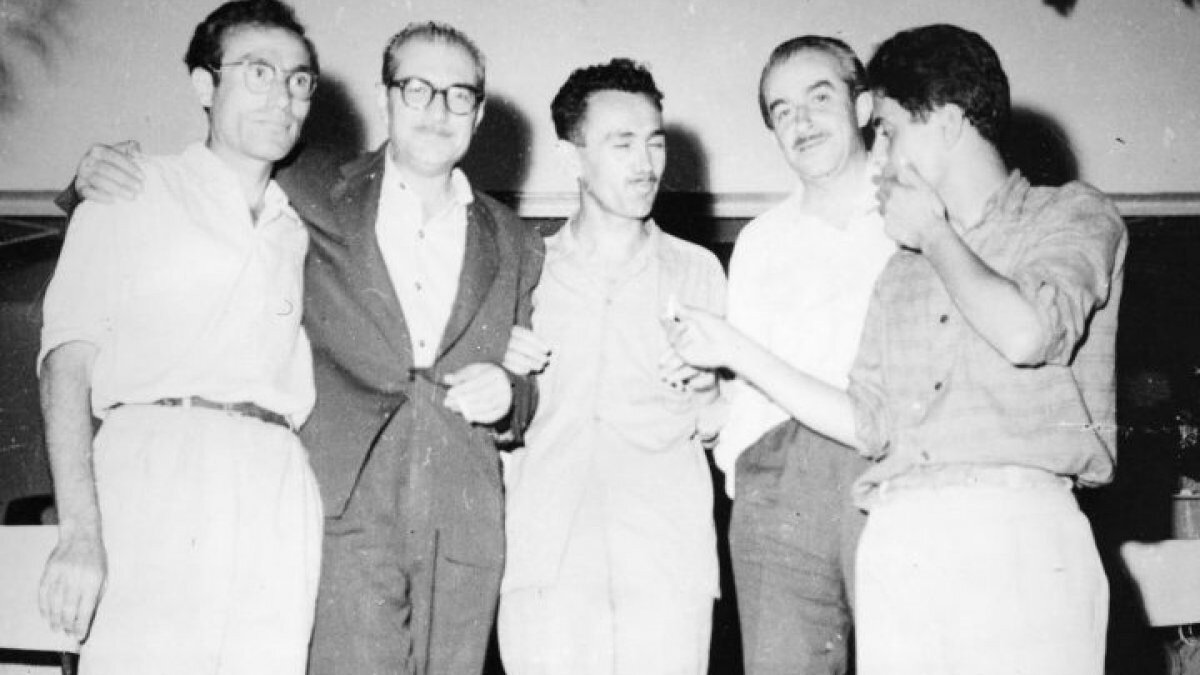 Fotoğraftakiler: Mahmut Makal, Kemal Tahir, Talip Apaydın, Orhan Kemal, Fakir Baykurt