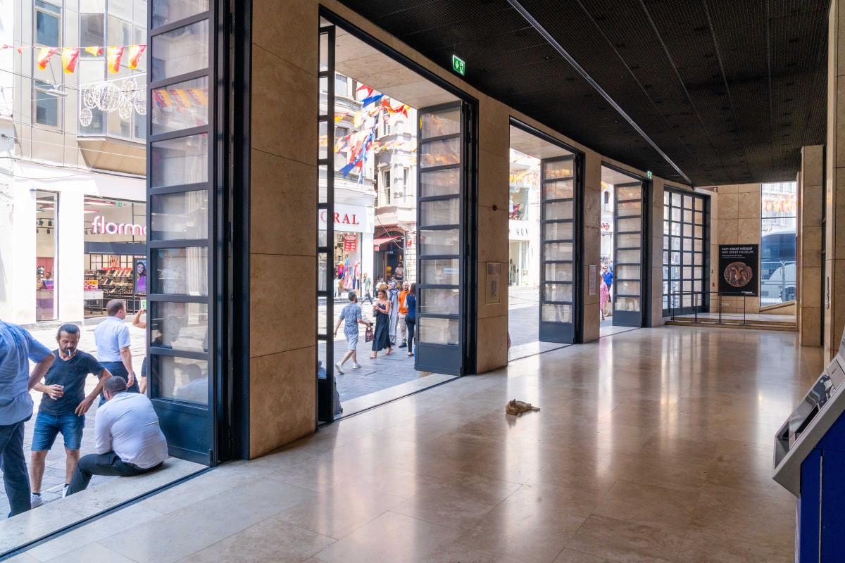 Portiko, Yapı Kredi Müze, Galeri, YKY Beyoğlu Kitabevi ziyaretçilerini ve caddenin kalabalığı arasındaki insanları gündelik koşuşturmaya kısa bir ara vermeye davet ediyor.