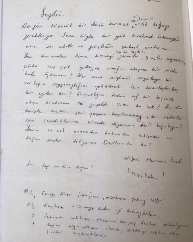 13 Ekim 1987'de, 29 yaşındayken; kaldığı evin balkonundan atlayarak hayatına son veren Nilgün Marmara’nın hayata veda etmeden önce bıraktığı mektup...