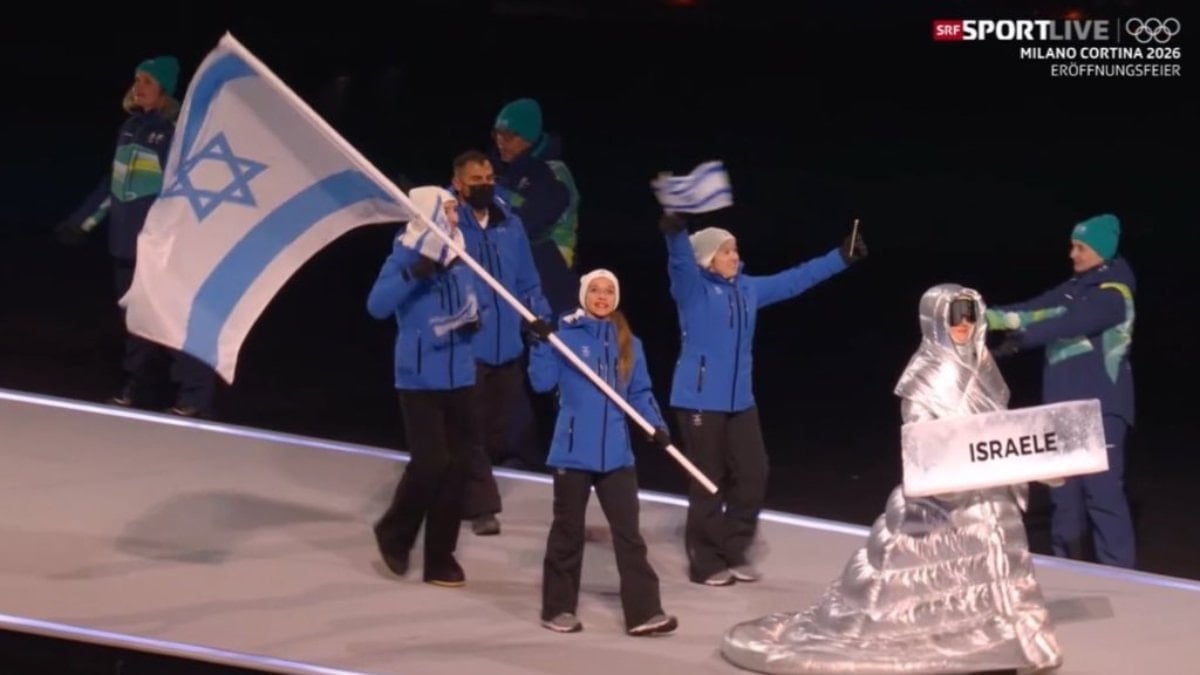 Olimpiyatların San Siro Stadyumu'ndaki açılış töreninde, İsrail'in dört kişilik delegasyonu piste giriş yaptı.
