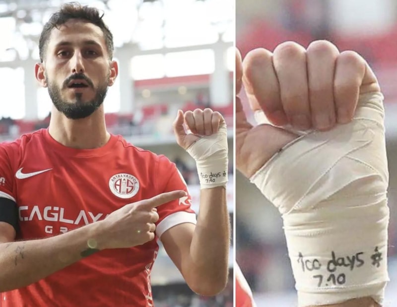 Antalyaspor'un İsrailli futbolcusu Sagiv Jehezkel, Trabzonspor'a attığı golden sonra kolundaki bandaja çizdiği İsrail bayrağı ve 7 Ekim'in 100. günü yazısı ile fotoğraf verdi. Skandalın ardından Antalyaspor Jehezkel'in kadro dışı bırakılmasına karar verildiğini duyurdu.