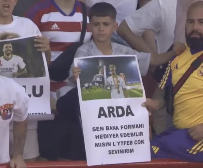 Minik bir taraftarın "Arda, bana formanı hediye edebilir misin? Lütfen, çok sevinirim" pankartı dikkat çekti.