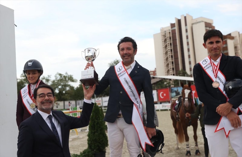 "Goldplay" isimli atıyla baraj parkurunu 34.74 saniyede tamamlayan İstanbul Atlı Spor Kulübünden Uğur Yılmaz, Cumhurbaşkanlığı Kupası'nın sahibi oldu.