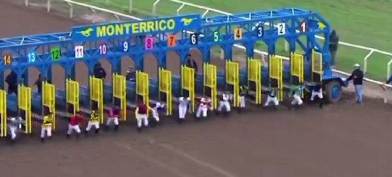 Peru’nun Monterrico Hipodromu’nda düzenlenen 'Jockey Fest’te 16 jokey, atları olmadan pistte yarıştı.