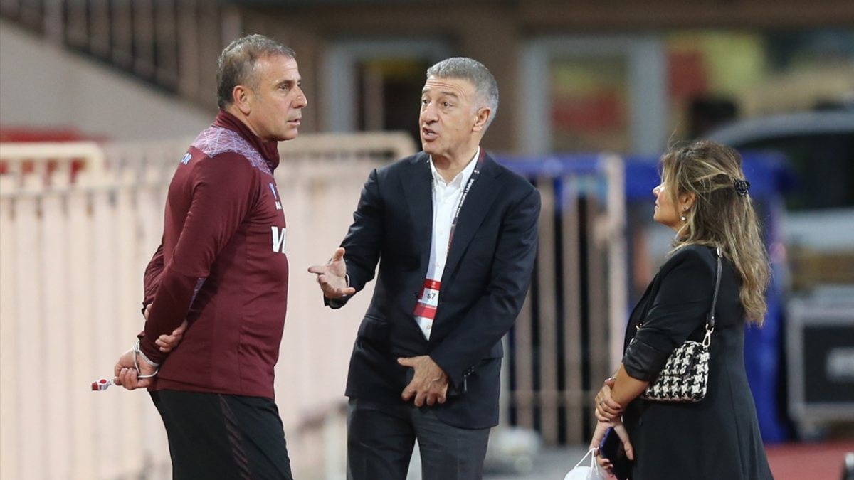 Antrenman öncesinde Trabzonspor Kulübü Başkanı Ahmet Ağaoğlu (ortada) Trabzonspor Teknik Direktörü Abdullah Avcı bir süre görüştü.