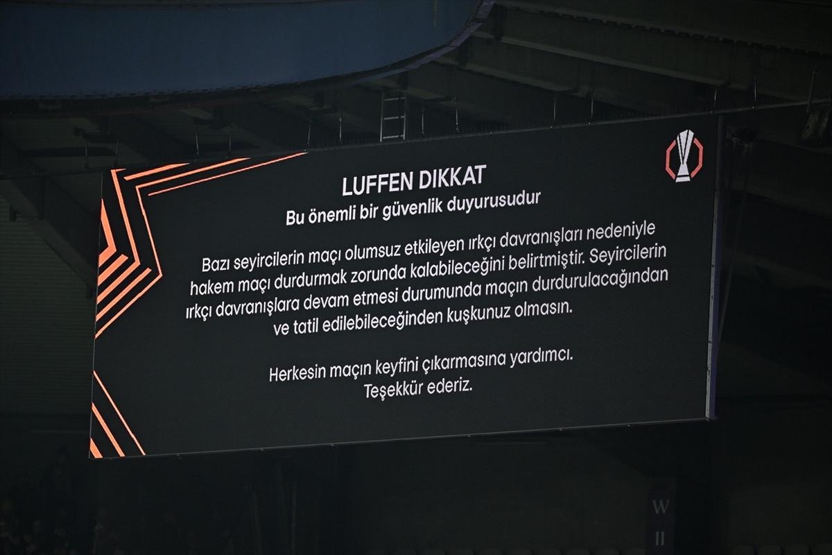 Bazı seyircilerin maçı olumsuz etkileyen ırkçı davranışları nedeniyle hakem maçı durdurmak zorunda kalabileceğini belirtmiştir. Seyircilerin ırkçı davranışlara devam etmesi durumunda maçın durdurulacağından ve tatil edilebileceğinden kuşkunuz olmasın.