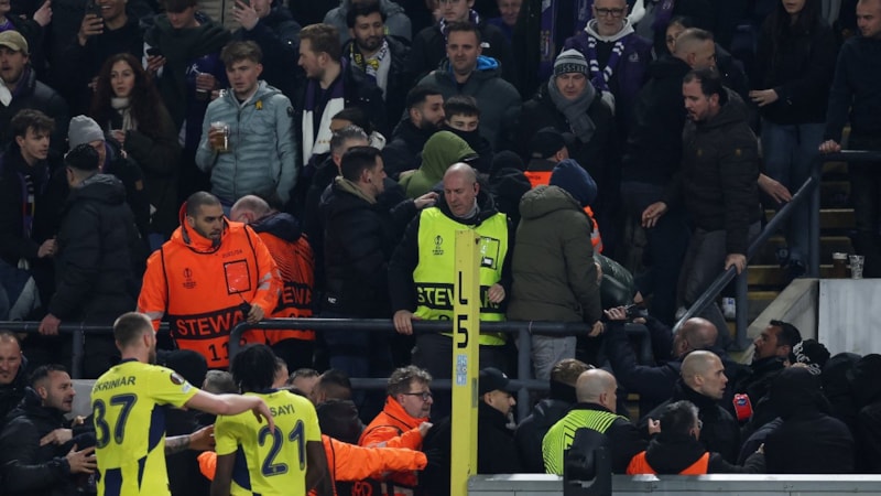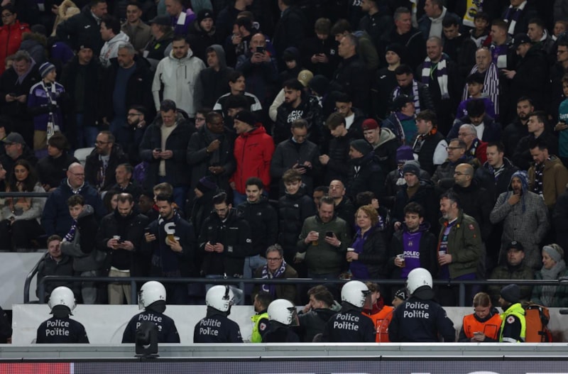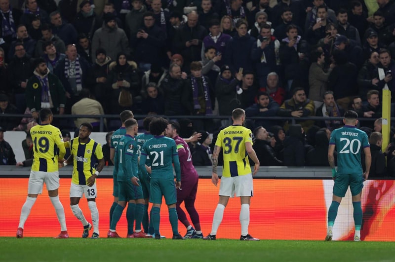 Anderlecht Stadı'nda oynanan maçın 4'üncü dakikasında sarı-lacivertliler 1-0 öne geçerken, 3 dakika sonrasında tribünlerde olay çıkmıştı.