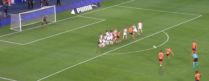 Başakşehir'in orta saha oyuncusu Dimitris Pelkas, UEFA Konferans Ligi 3. eleme turu rövanş maçında Gürcistan takımı Iberia Tiflis'e mükemmel bir frikik golü kaydetti.