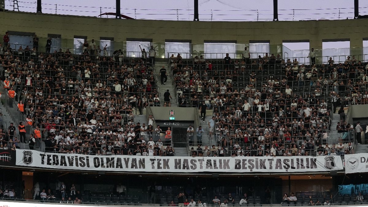 Siyah-beyazlı taraftarlar da karşılaşmanın ikinci yarısında oyuncularına tepki gösterdi.