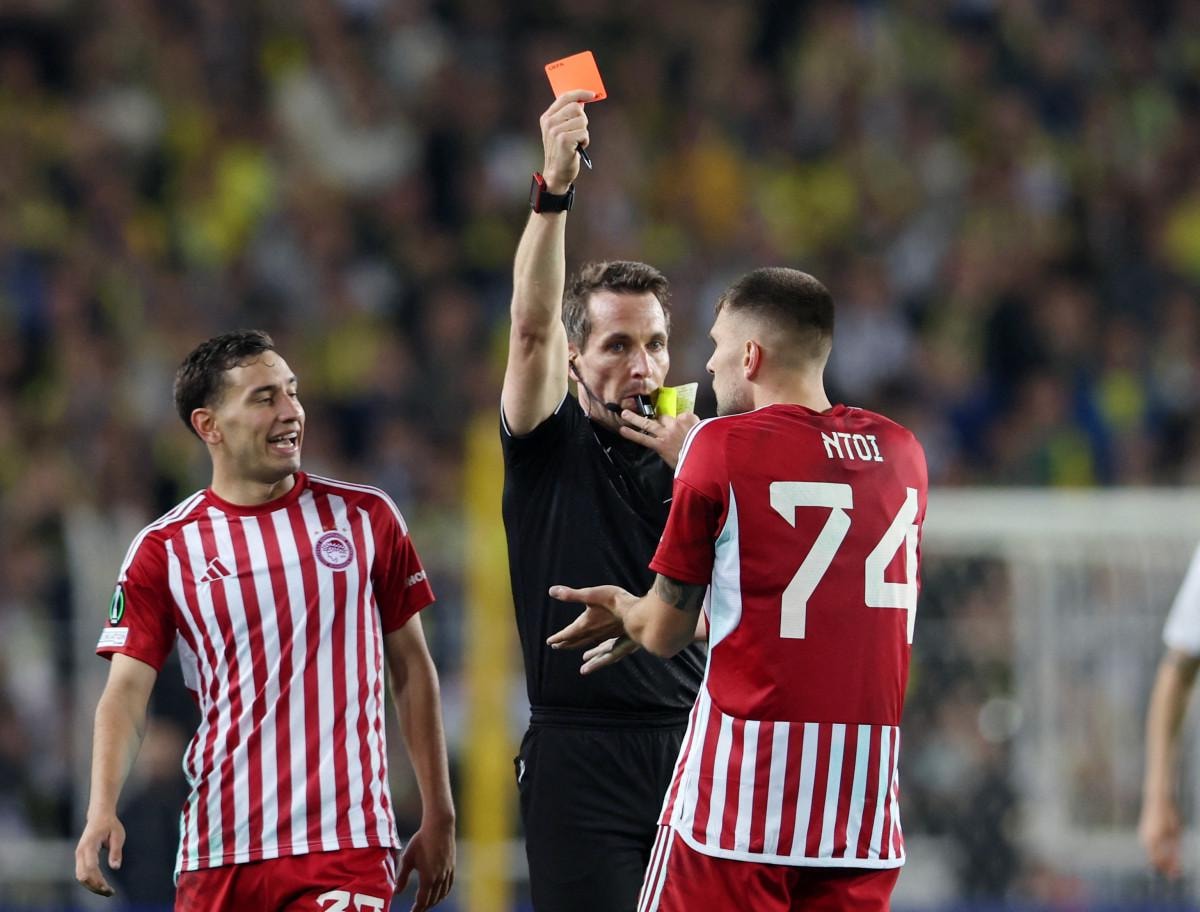 94' Olympiakos'ta Masouras, Tadic'e yaptığı hareket nedeniyle sarı kart gördü.