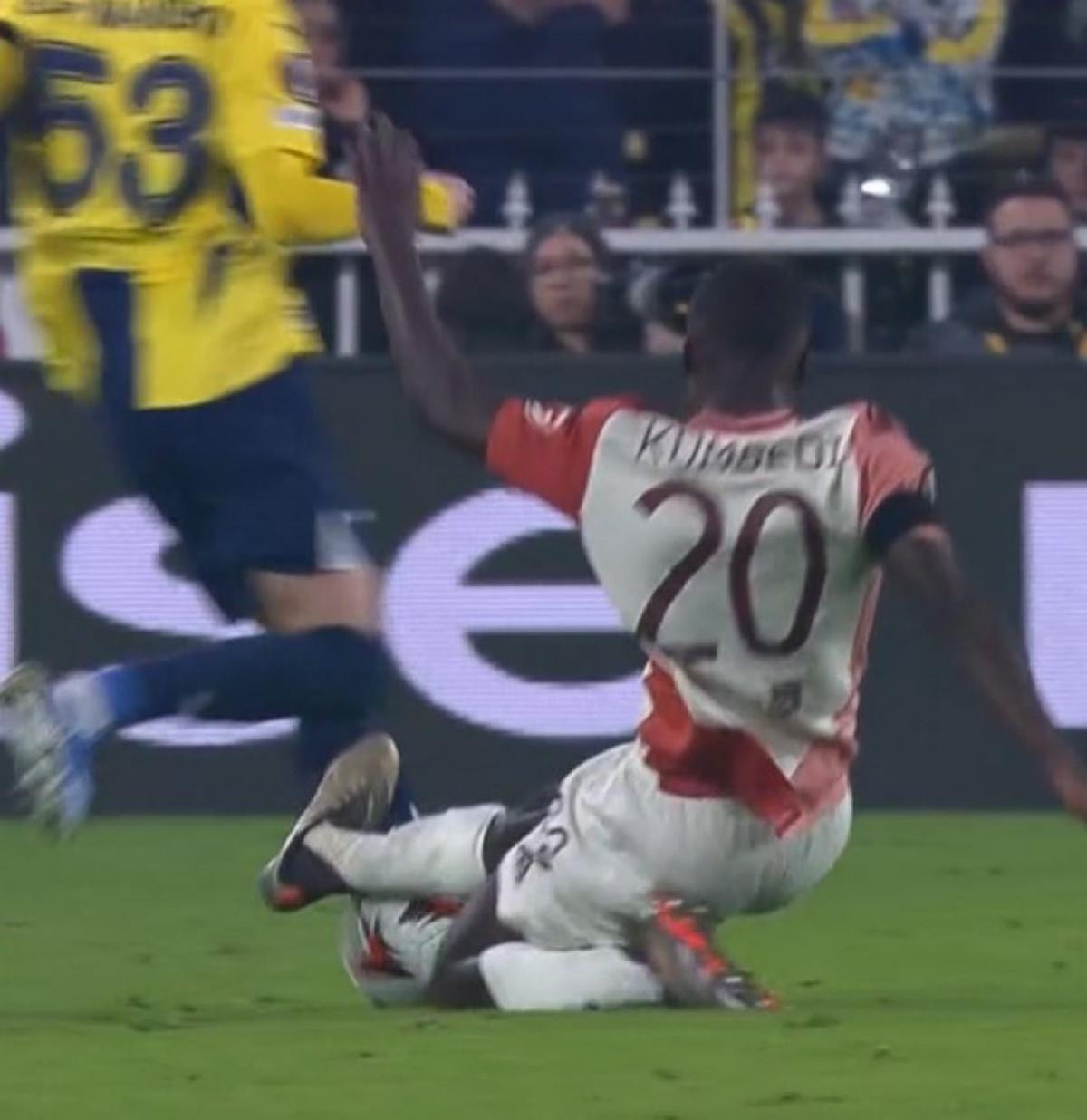 Fenerbahçeli futbolcular ve teknik heyet, bu pozisyonda kırmızı kart bekledi.