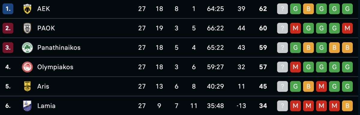 Play-off'lardaki ilk maçında Fatih Terim'in başında olduğu Panathinaikos'a 3-1'lik skorla mağlup olan Olympiakos 4. sıraya geriledi.