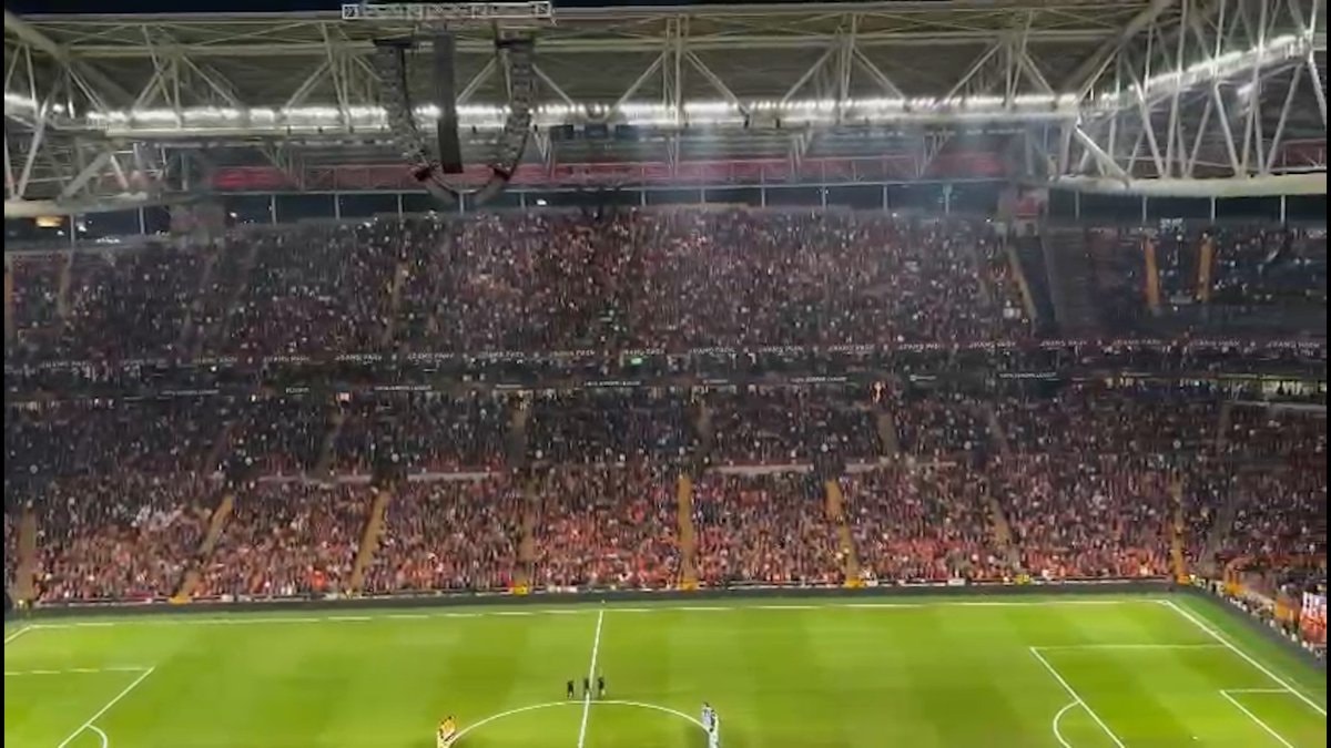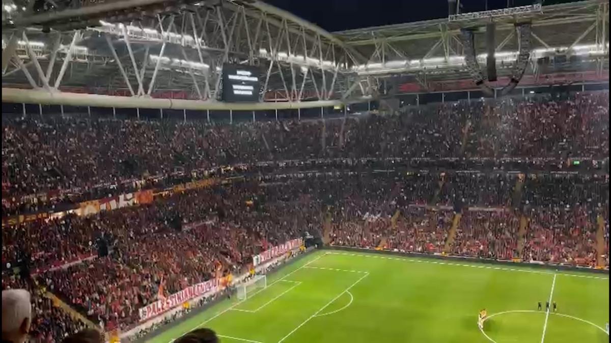 Galatasaraylılar, 'Kahrolsun İsrail' ve 'Filistin'e özgürlük' tezahüratlarının ardından tekbir getirdi.