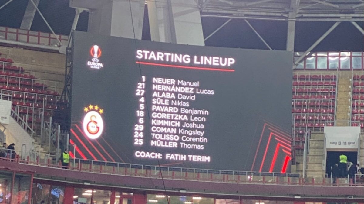 İlk 11'ler ekrana yansırken, Galatasaray kadrosu yerine Bayern Münih kadrosu yazılmıştı.
