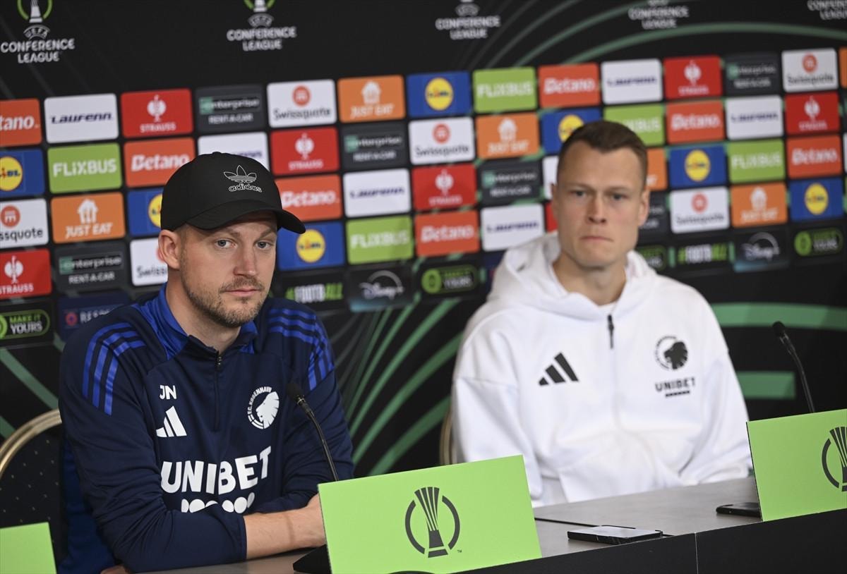 Jacob Neestrup, Parken Stadı'nda düzenlenen basın toplantısına takımın orta saha oyuncularından Viktor Claesson ile birlikte katıldı.
