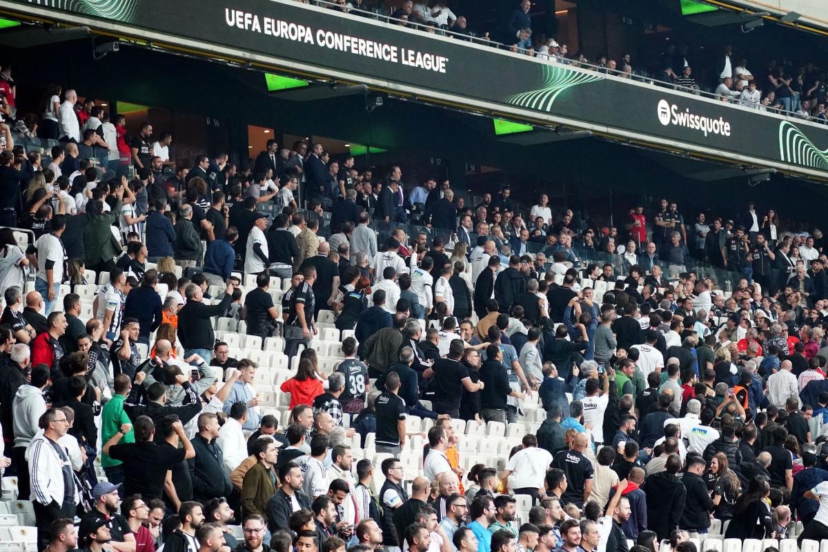 Dolmabahçe'de oynanan mücadelenin ilk yarısının son dakikalarında ise tribünlerde tansiyon yükseldi.