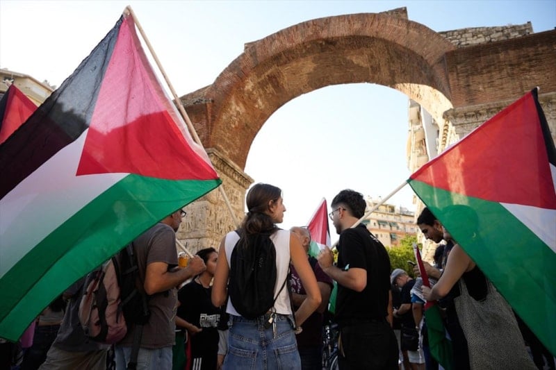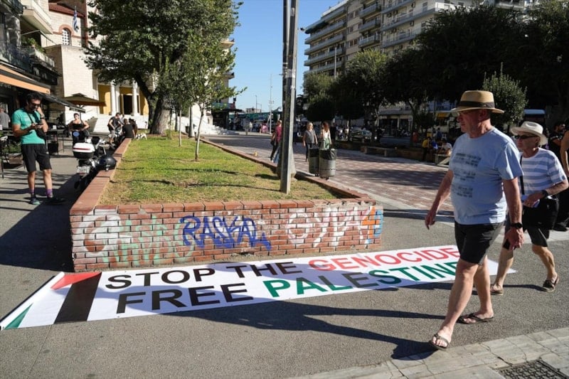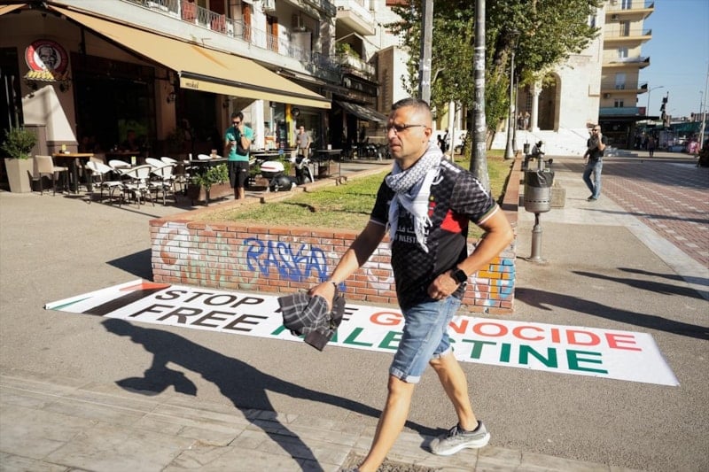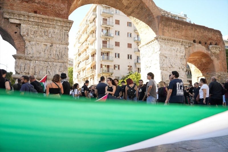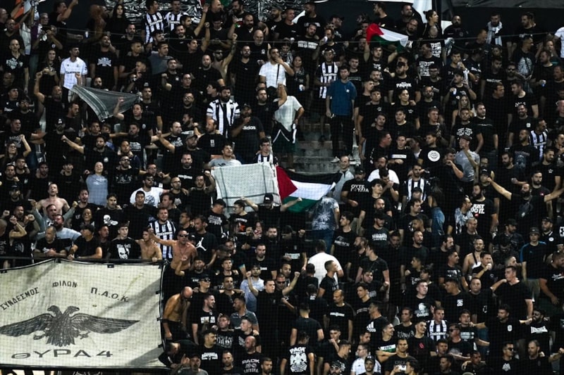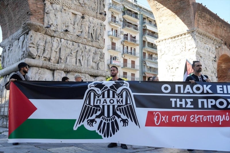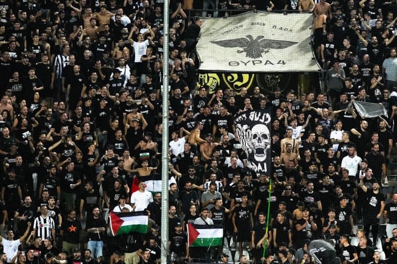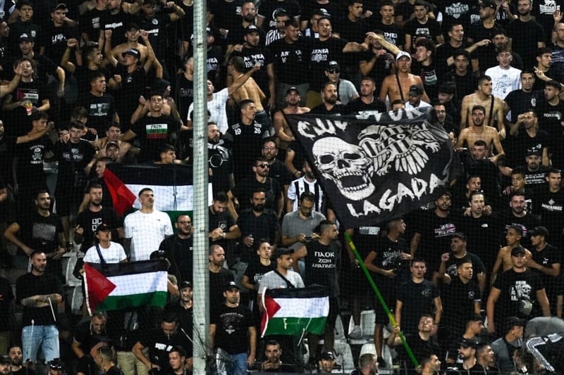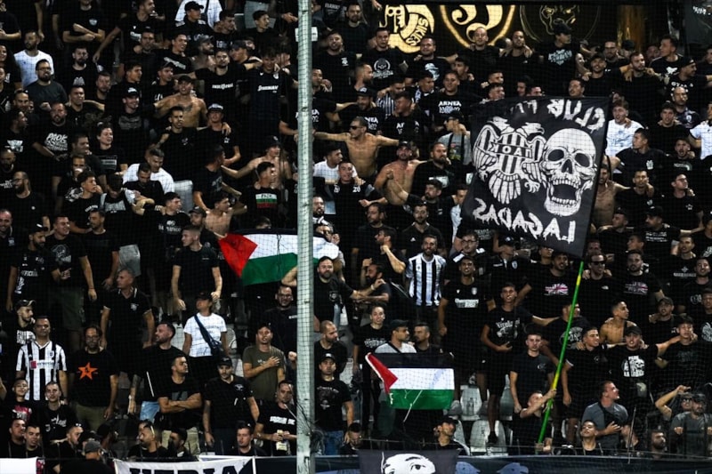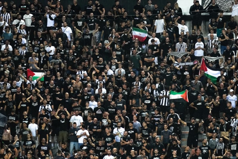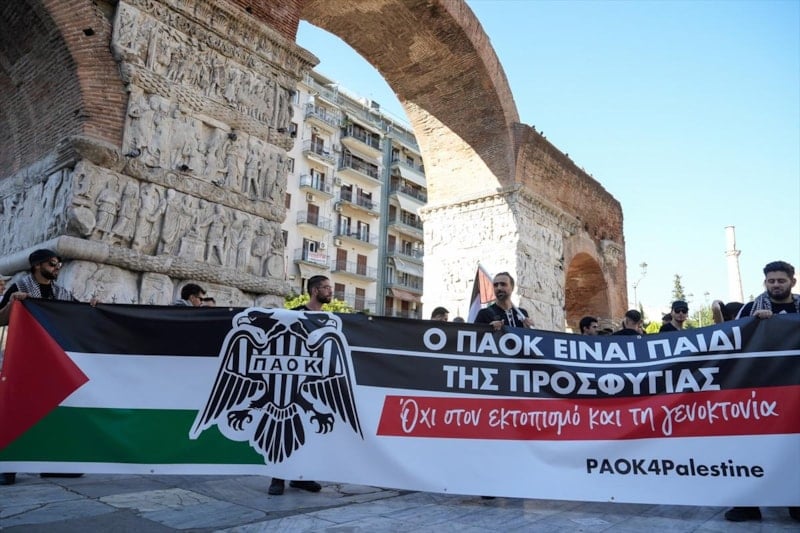 PAOK taraftarları, İsrail takımlarının spor etkinliklerine katılmasını protesto etti ve Filistin'e destek verdi.