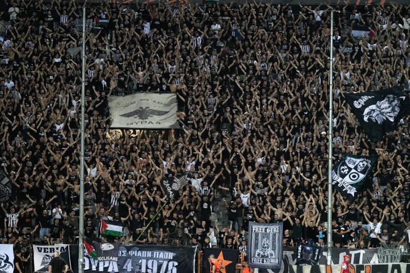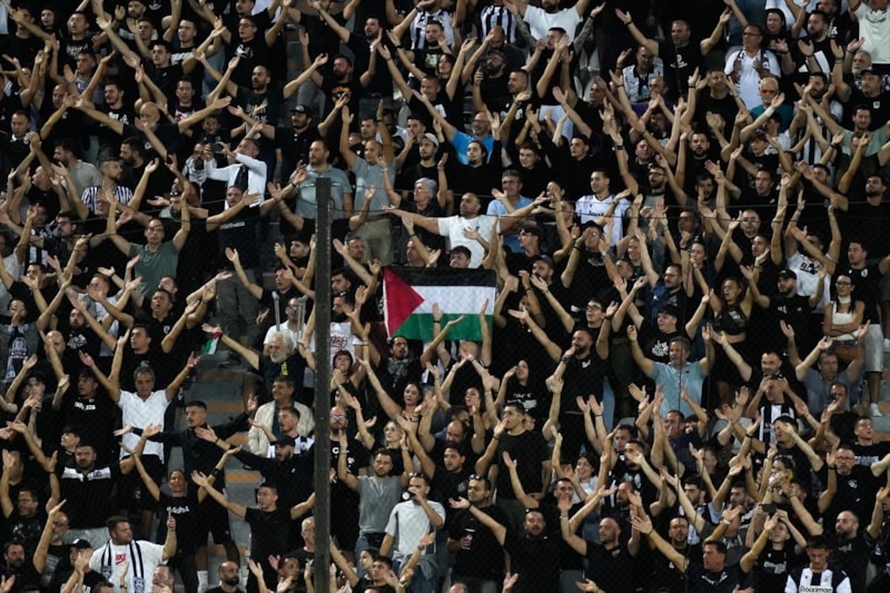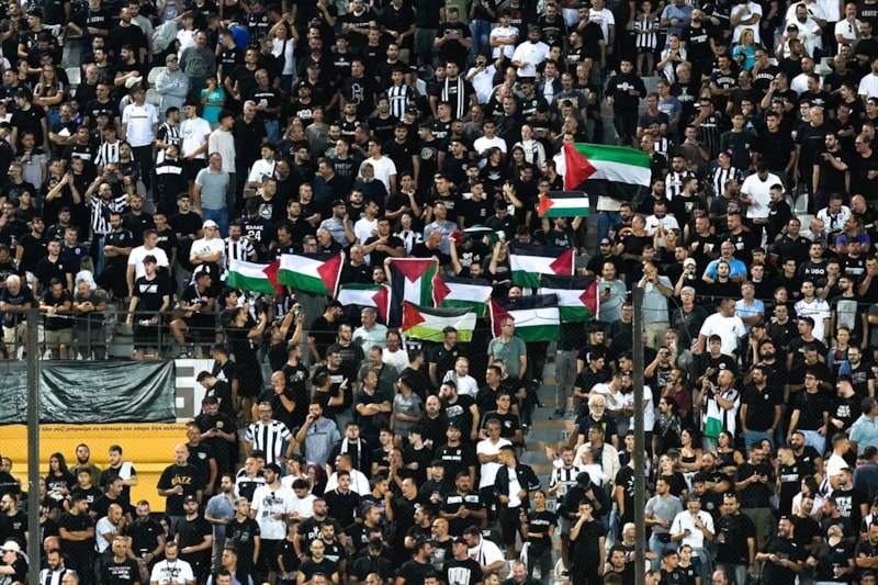 Toumba Stadı'nda oynanan ve golsüz eşitlikle sona eren maç öncesi PAOK taraftarları, İsrail takımlarının spor etkinliklerine katılmasını protesto etti ve Filistin'e destek verdi.
