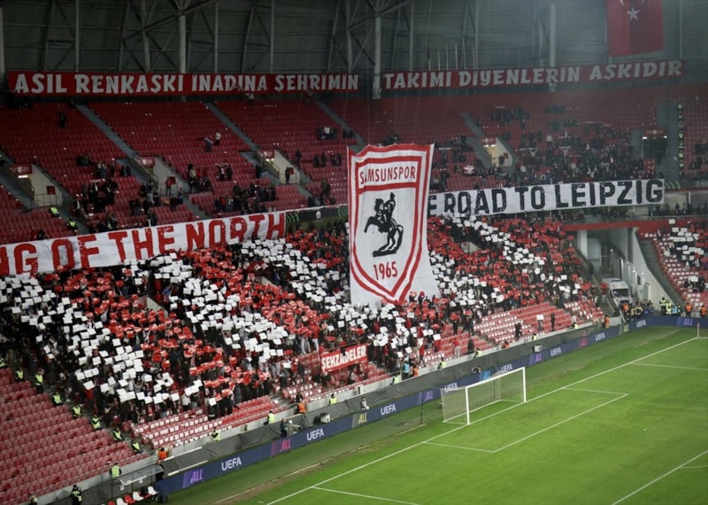 Yeni 19 Mayıs Stadyumu’nda oynanan müsabakanın öncesinde Samsunsporlu futbolseverler görsel şölen oluşturdu.