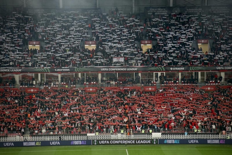 Türkiye'ye otobüsle gelen AEK taraftarları da kendilerine ayrılan bölümde takımlarına destek verdi.