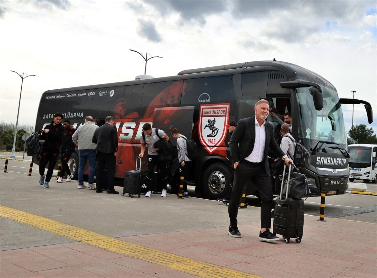 Nuri Asan Tesisleri'nden ayrılan kırmızı-beyazlı ekip, Samsun-Çarşamba Havalimanı'ndan özel uçakla Kuzey Makedonya'nın başkenti Üsküp'e hareket etti.