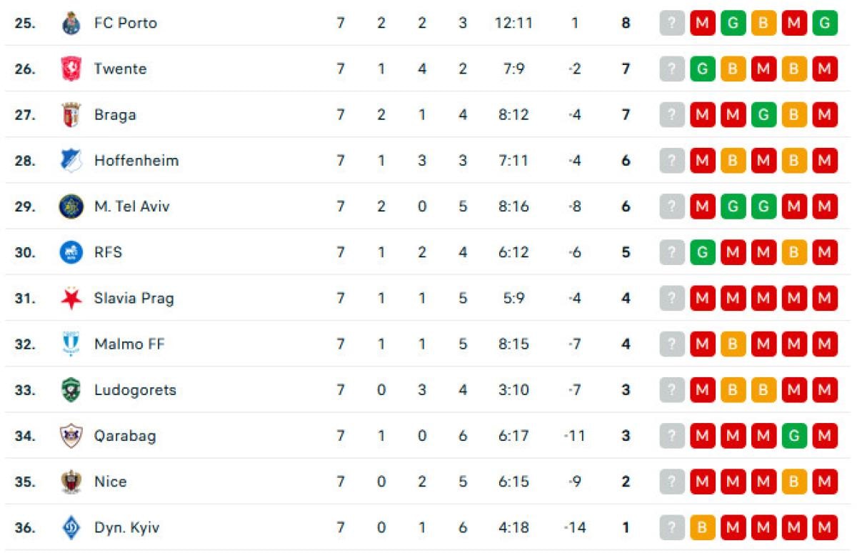 Haftanın tamamlanmasının ardından oluşan puan durumunda ilk 8 dışına düşen Galatasaray, 13 puanla 9. sırada yer aldı. Dokuzar puanı bulunan Fenerbahçe 23, Beşiktaş ise 24. sırada yer bularak play-off kotasında kaldı.