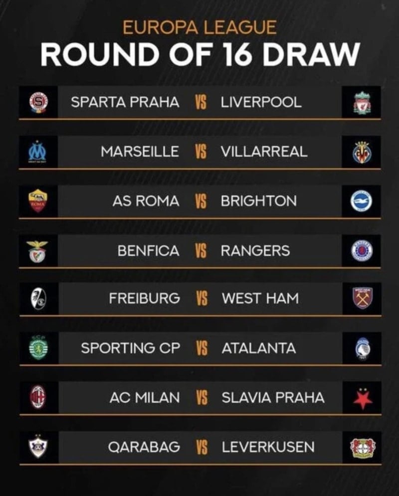UEFA Avrupa Ligi'nde son 16 turu eşleşmeleri çekilen kurayla belirlendi. Play-off turunda Galatasaray'ı eleyen Sparta Prag ise Liverpool ile eşleşti. Avrupa Ligi son 16 turunda ilk maçlar 7 Mart'ta, rövanş maçları 14 Mart'ta oynanacak.