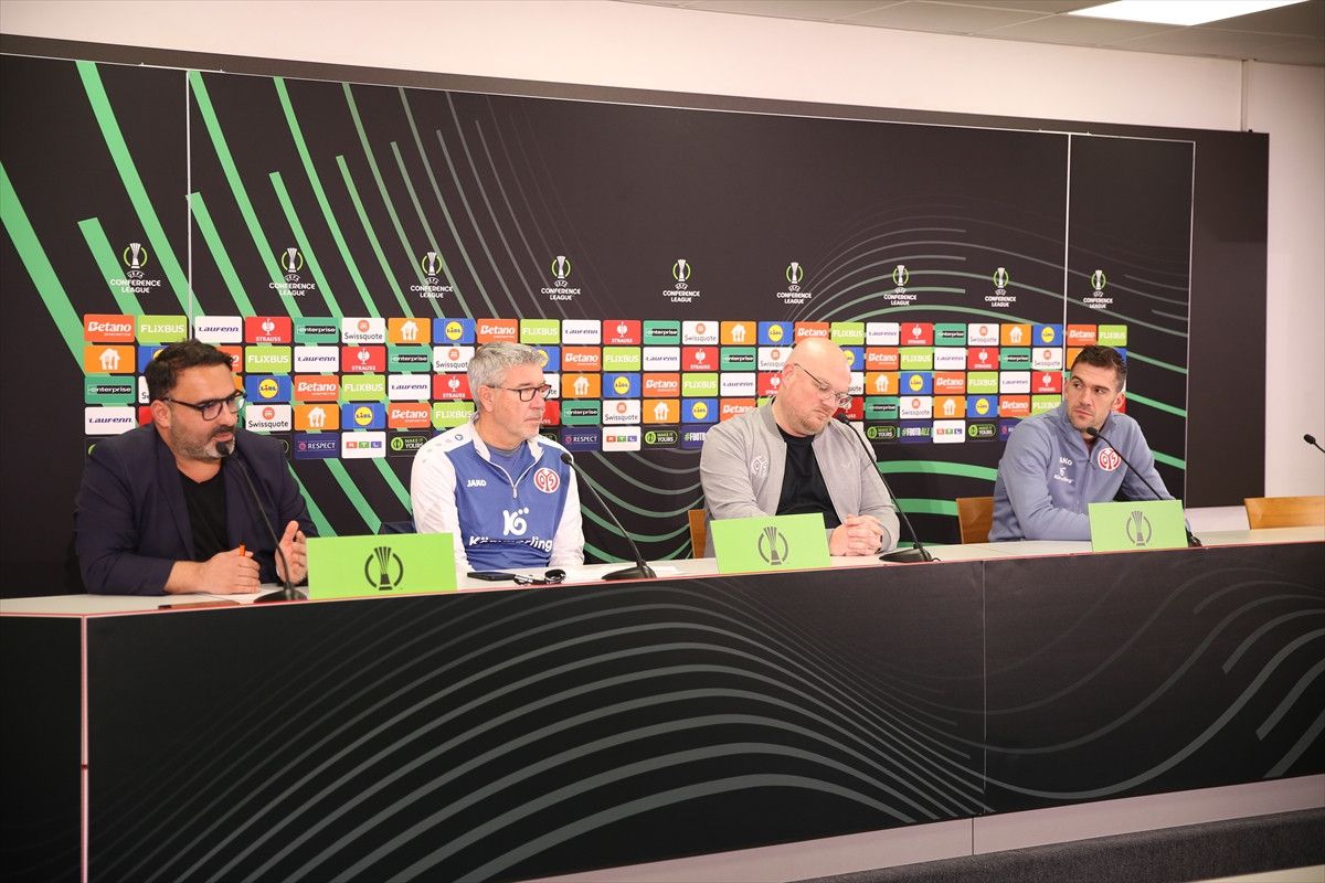 Fischer ile Mainz 05'in tecrübeli oyuncusu Stefan Bell, maçın oynanacağı Mewa Arena'da basın toplantısı düzenledi.