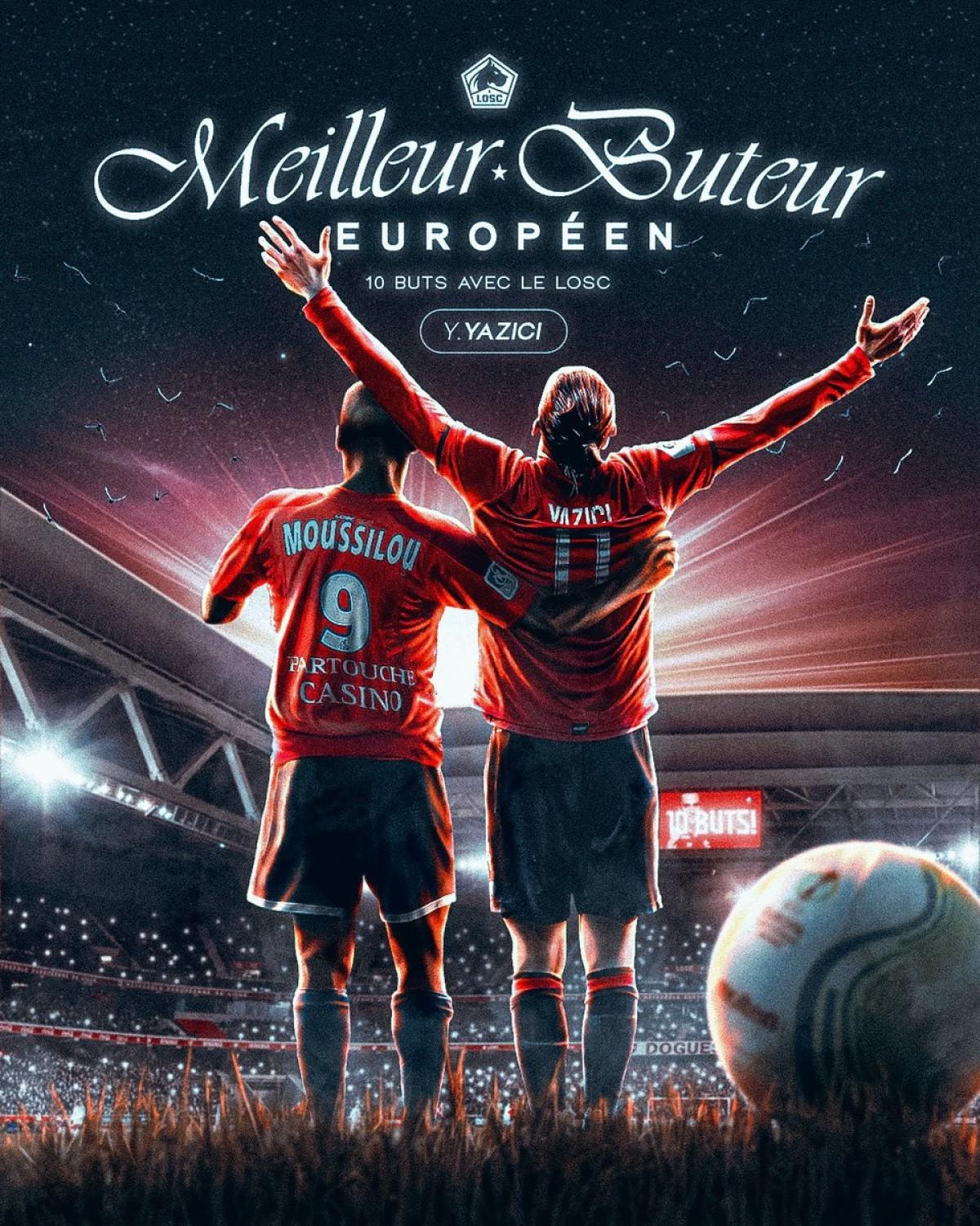 Fransa 1. Futbol Ligi (Ligue 1) ekibi Lille'de milli futbolcu Yusuf Yazıcı, 10 golle Fransız ekibinin Avrupa kupalarındaki en golcü futbolcusu oldu.