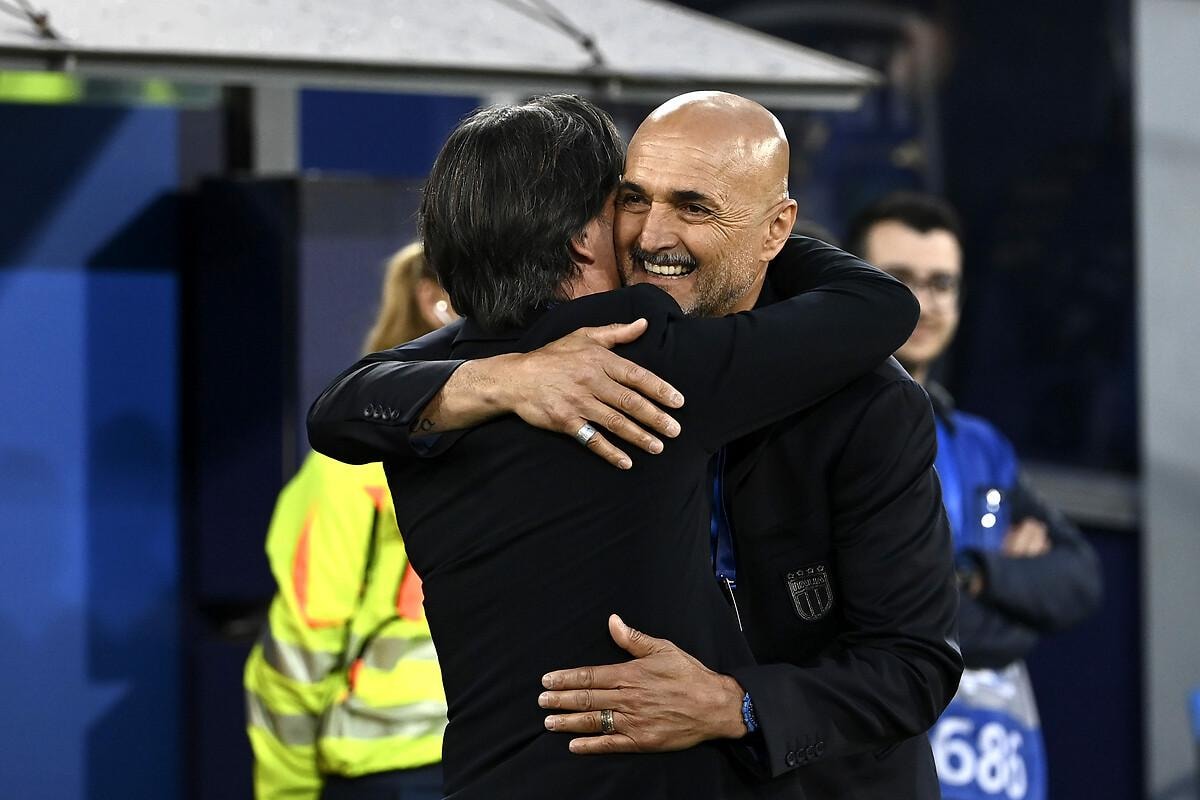 Rangnick'i 1959 doğumlu İtalya Teknik Direktörü Luciano Spaletti izliyor.