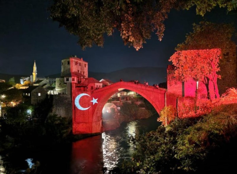 Mostar Köprüsü'ne ay-yıldızlı bayrağımız yansıtıldı