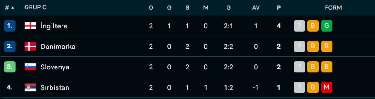 C ve D Grubu'nun puan durumu