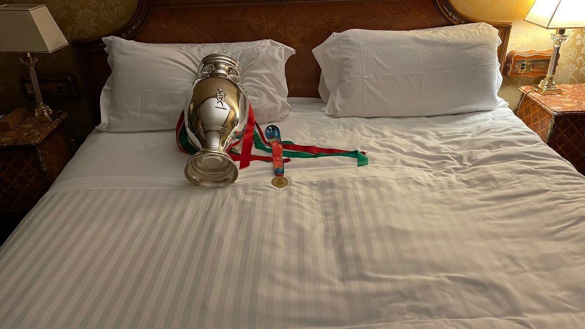 Sonunda istediğini alan oyuncu kupayı kazanmanın mutluluğunu yaşadı. Deneyimli stoper, gecenin sonunda EURO 2020 kupasıyla uyudu.