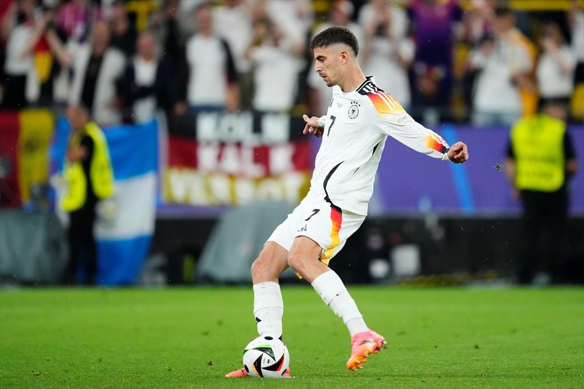 54. dakikada beyaz noktanın başına geçen Havertz, topu ağlara göndererek Almanya'yı 1-0 öne geçirdi.