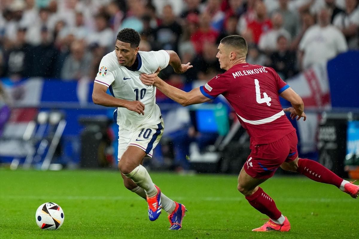 Almanya'nın ev sahipliğinde gerçekleştirilen 2024 Avrupa Futbol Şampiyonası (EURO 2024) kapsamında C Grubu'nda yer alan İngiltere ile Sırbistan, Schalke Stadyumu'nda kozlarını paylaştı.