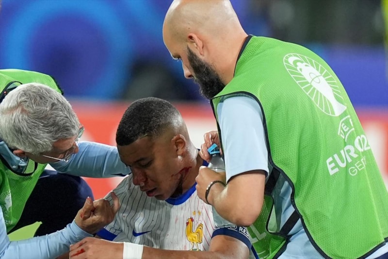 EURO 2024'ün ilk maçında Avusturya ile karşılaşan Fransa'da Kylian Mbappe, Danso ile çarpıştıktan sonra oyunu bırakmak zorunda kaldı. Yıldız oyuncunun burnunun kırıldığı öğrenildi.