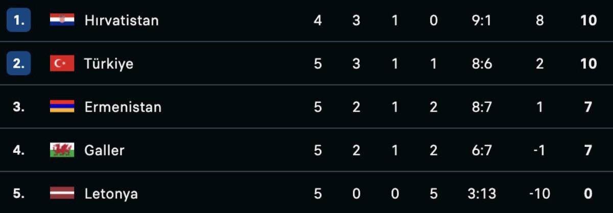5 maç sonunda puanı bulunmayan Letonya ise Ermenistan'ı ağırlayacak.
