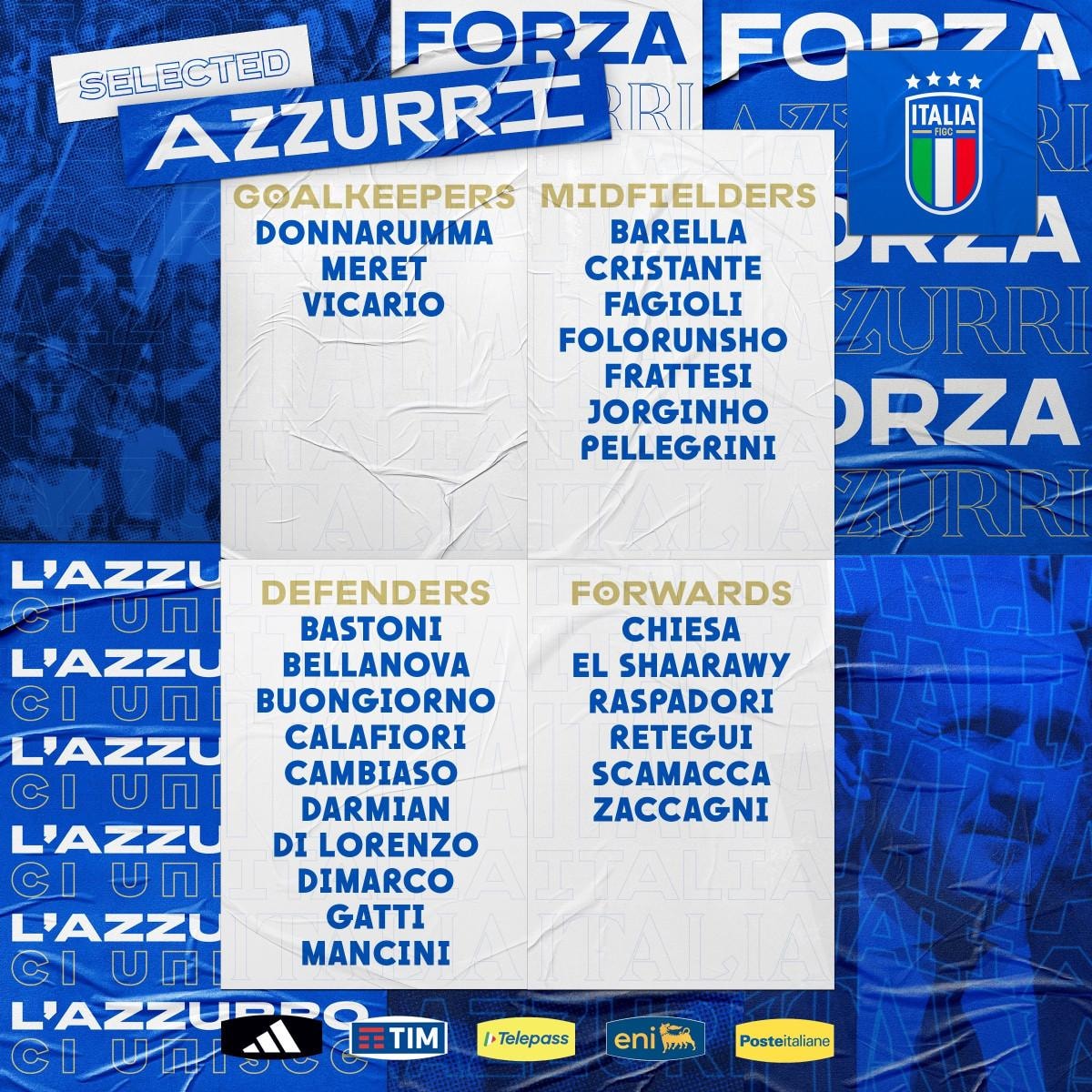 İtalya Milli Takımı, 2024 Avrupa Futbol Şampiyonası için (EURO 2024) 26 kişilik nihai turnuva kadrosunu açıkladı.