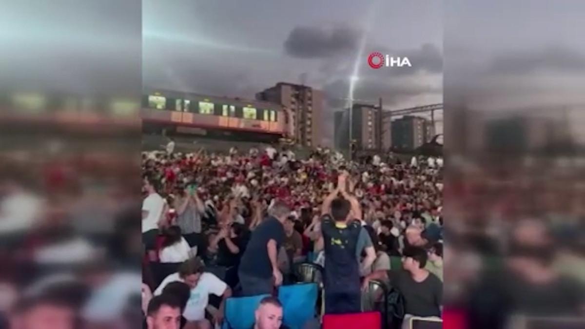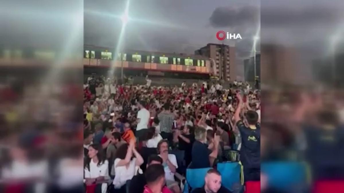 Karşılaşmanın oynandığı anlarda Bakırköy’de kurulan dev ekranda maçı izleyen taraftarları gören makinist, Marmaray’ı durdurarak taraftara eşlik etti.