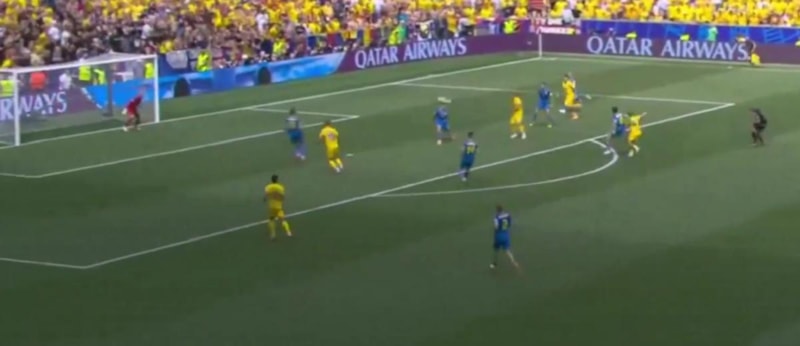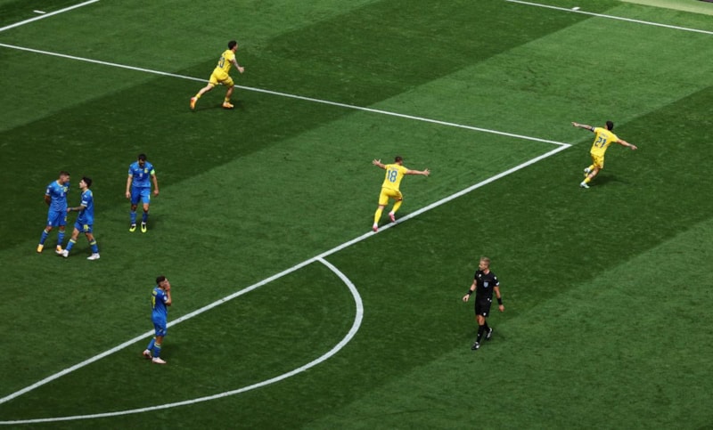 Dakikalar 29'u gösterdiğinde kariyerini Suudi Arabistan takımı Damac FC'de sürdüren Romanya kaptanı Nicolae Stanciu, Ukrayna kalecisi Andriy Lunin'i çaresiz bıraktı.